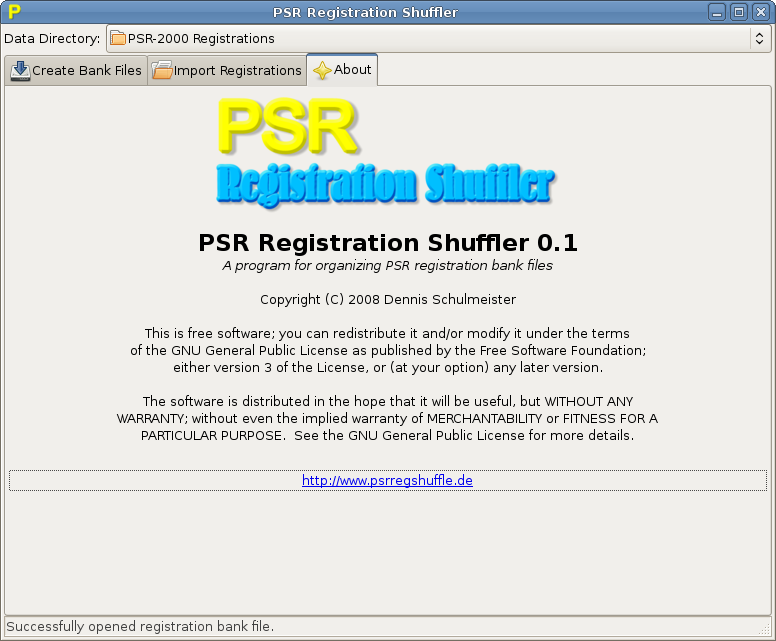 | This page shows how the first public release of the »PSR Registration Shuffler« (version 0.1) looked alike. For more recent images please visit the Screenshots page. About the program